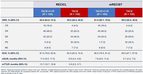 1.Gao-Jun Teng, et al. Transarterial chemoembolization (TACE) combined with camrelizumab and rivoceranib versus TACE alone in the treatment of unresectable hepatocellular carcinoma: a multicenter, open-label, randomized, phase 2 study (CARES005).2025 ASCO GI LBA522.