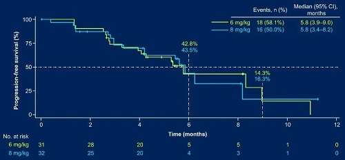 图2. 6mg/kg和8mg/kg剂量组的PFS结果