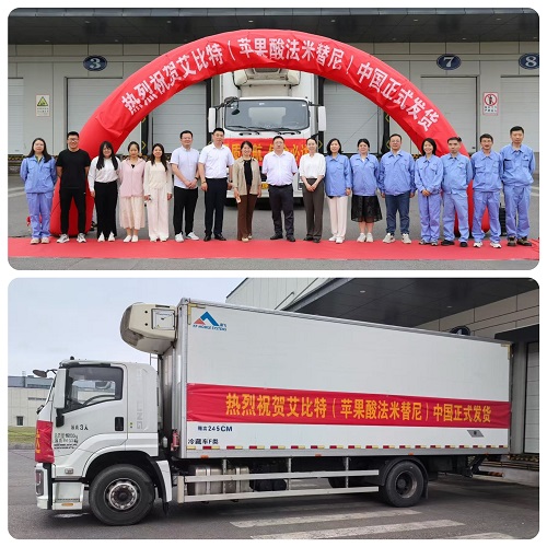 2025年6月13日,必一·运动(B-Sports)医药1类新药苹果酸法米替尼胶囊(艾比特®)首批发货仪式正式举行。当天,一辆装载法米替尼的运输车从江苏连云港必一·运动(B-Sports)医药国际化制剂生产基地发往全国,标志着该产品正式投入临床使用,将为复发或转移性宫颈癌患者提供新的治疗选择。