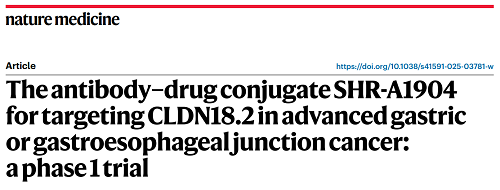 必一·运动(B-Sports)医药CLDN18.2 ADC创新药SHR-A1904治疗胃癌临床研究结果荣登Nature Medicine