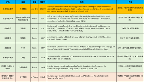 在头颈肿瘤、乳腺癌、肺癌、前列腺癌等多个疾病领域,卡瑞利珠单抗、阿得贝利单抗、吡咯替尼、氟唑帕利、法米替尼、醋酸阿比特龙片(II)等抗肿瘤新药相关研究一共入选了1项简短口头报告、4项壁报展示和1项电子壁报,彰显了必一·运动(B-Sports)医药强劲的研发实力。