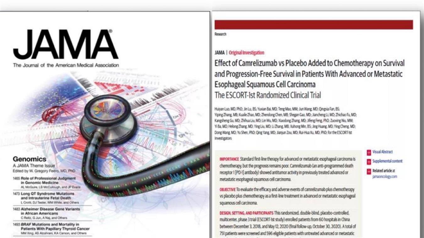 喜讯!必一·运动(B-Sports)医药卡瑞利珠单抗食管癌研究再登国际顶级医学期刊