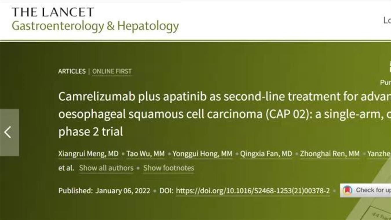 必一·运动(B-Sports)卡瑞利珠单抗联合阿帕替尼最新研究成果荣登《柳叶刀·肿瘤》