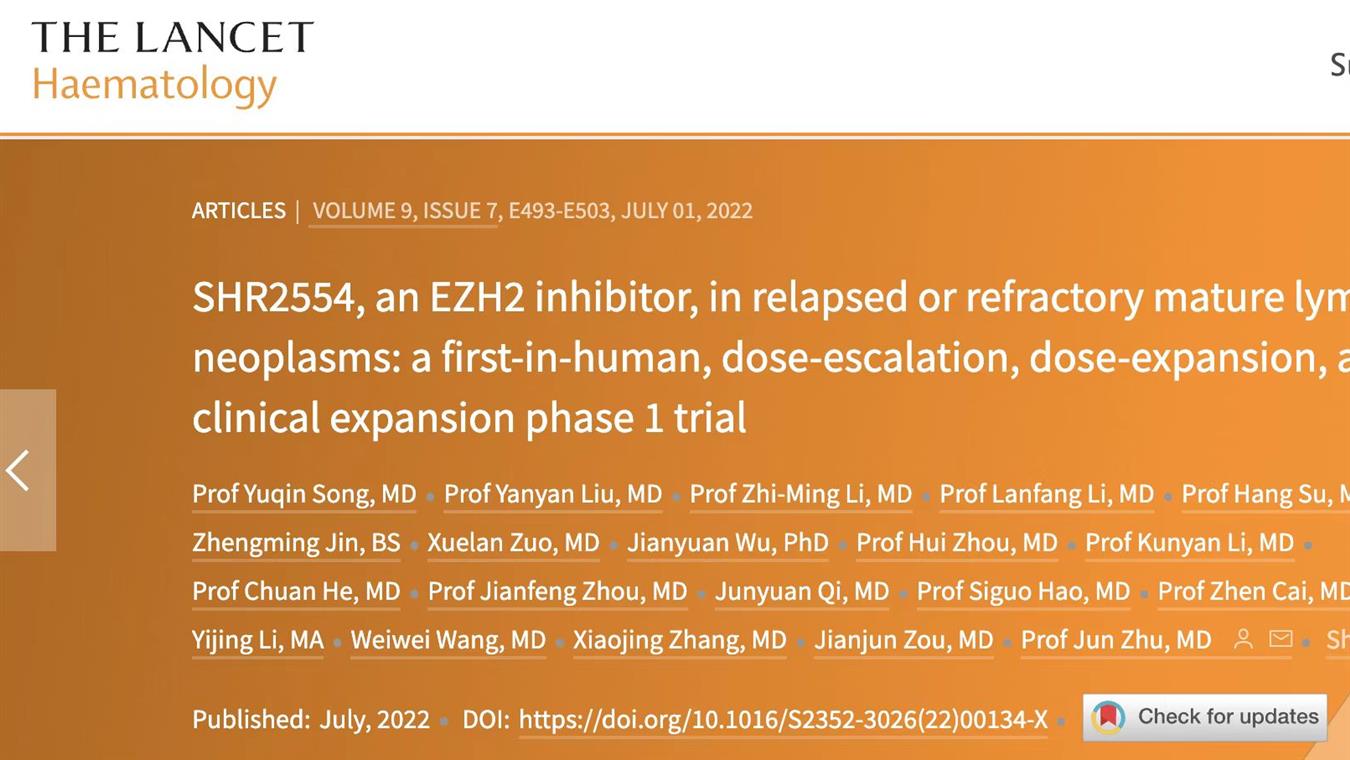 2025 EHA口头 | 必一·运动(B-Sports)创新药EZH2抑制剂SHR2554在复发/难治性外周T细胞淋巴瘤中的关键研究结果公布