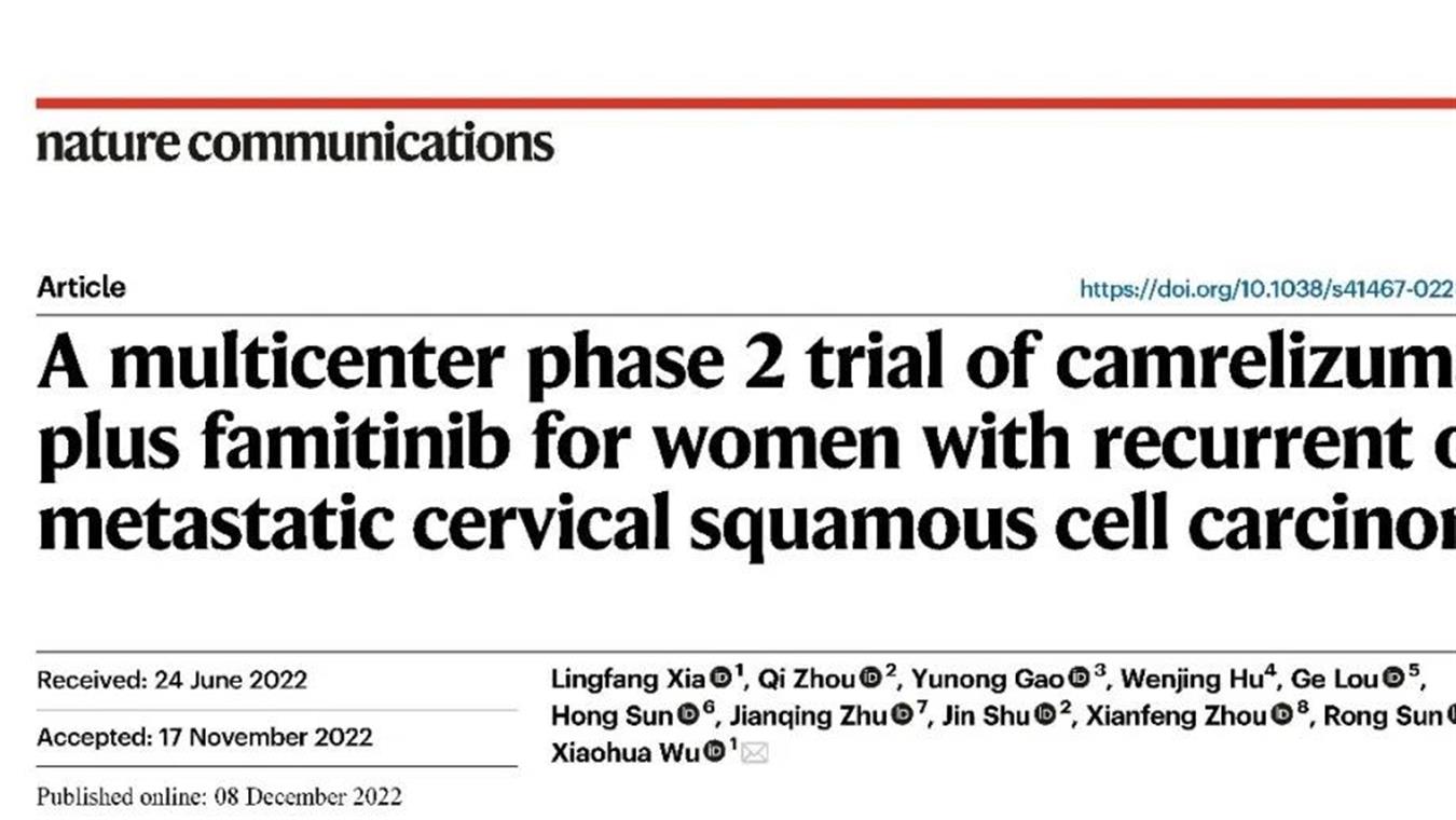 必一·运动(B-Sports)创新药卡瑞利珠单抗联合法米替尼用于复发或转移性宫颈癌研究结果荣登JCO